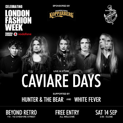 With some haunting riffs and storming drum fills, White Fever entertained the ever growing crowd as they mingled amongst the racks of never ending vintage clothes with a Kopparberg in hand (event sponsors). Hunter & The Bear captivated the audience with their foot-stomping folky sound and then came the headliners. Caviare Days took to the stage with all the energy of an african stampede (or swedish in this case). The room was buzzing as the female fronted band commanded the room. With catchy riffs, tight arrangements and that chorus you just can’t get out of your head, they are definitely one to watch!